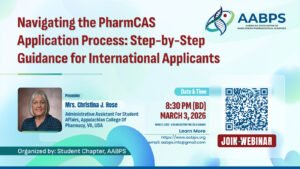 News Navigating the PharmCAS Application Process: Step-by-Step Guidance for International Applicants (Recap) March 3, 2026 / March 3, 2026 by sadakur Rahman | Leave a Comment March 03, 2026 | AABPS Webinar Recap The American Association of Bangladeshi Pharmaceutical Scientists (AABPS) successfully hosted an informative webinar titled “Navigating the PharmCAS Application Process: Step-by-Step Guidance for International […] Read more »